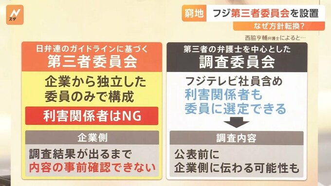 23日に行われたフジ・メディア・ホールディングスの会見では、日弁連のガイドラインに基づく第三者委員会の設置をフジテレビが正式に決めたことが明らかになりました。第三者委員会の設置は、ずっと指摘されていたことです。