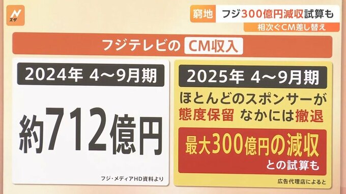 2024年4~9月期のフジテレビのCM収入は約712億円(フジ・メディアHD資料より)ありました。