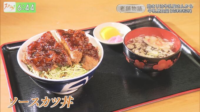 揚げたてのカツをシャキシャキのキャベツを敷いた丼の上に乗せ、長年継ぎ足す秘伝のソースをたっぷりとかけて完成です。店では、ミルクみそラーメンとソースカツ丼の2つが味わえるセットメニューもあり、訪れた人たちは、老舗の味に、お腹も心も大満足のようでした。