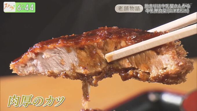 その特徴は肉厚でジューシーなカツ。厚さ2センチほどに切った豚の肩ロースが使われていて、毎朝100枚から120枚ほど準備しているといいます。