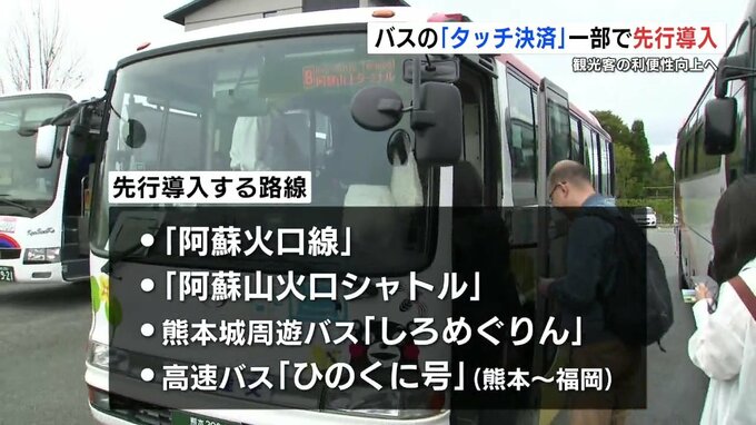 熊本県内で路線バスを運行する5社は、クレジットカードなどで運賃を支払う「タッチ決済」を2月1日から一部路線で先行導入すると発表しました。県内の路線バスを巡っては、去年11月に全国交通系ICカードが使用でき…