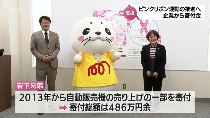 乳がんの検診を呼びかけるピンクリボン運動を推進しようと、企業から寄付金が贈られました。ピンクリボン運動を啓発するNPO法人に50万円を寄付したのは、宮崎県と熊本県でパチンコ店などを経営する岩下兄弟です。…