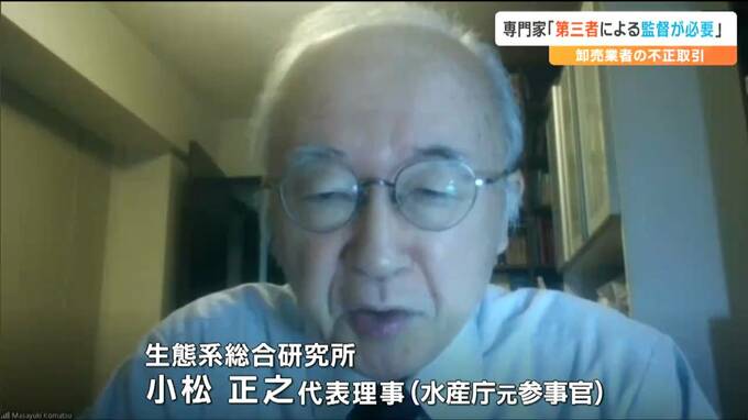 水産庁の元参事官で生態系総合研究所代表理事の小松正之さんは、塩釜市魚市場を運営する卸売業者が行っていた不適切な取り引きで、架空の名義を使っていた点を指摘します。