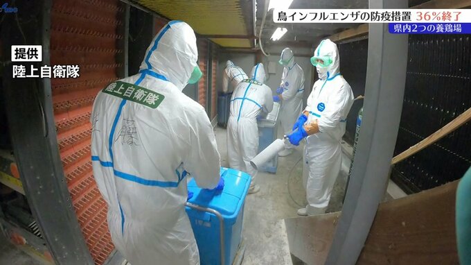 県によりますと、24日午前9時までに全体のおよそ36%に当たる23万7804羽のニワトリの殺処分を終えたということです。