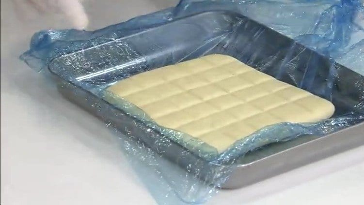 3.ラップに2の生地を包み冷蔵庫で一晩休ませる。