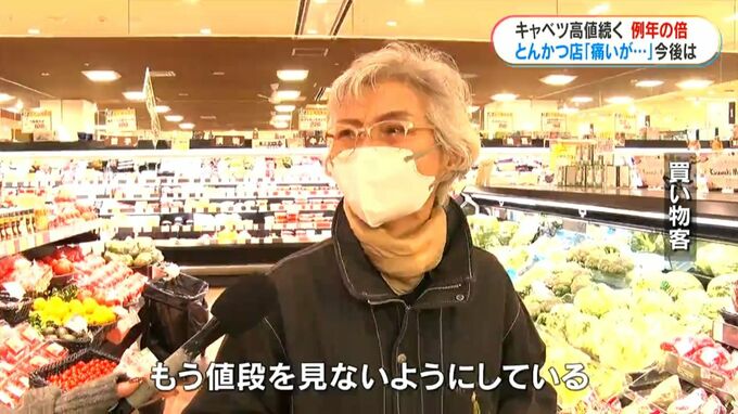 去年11月ごろから続く「キャベツ」の高騰。例年と比べ、倍以上の値段です。