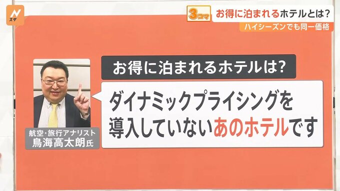 お得に泊まれるホテルを航空・旅行アナリストの鳥海高太朗さんに聞いてみたところ、「ダイナミックプライシングを導入していない、あのホテルです」ということでした。
