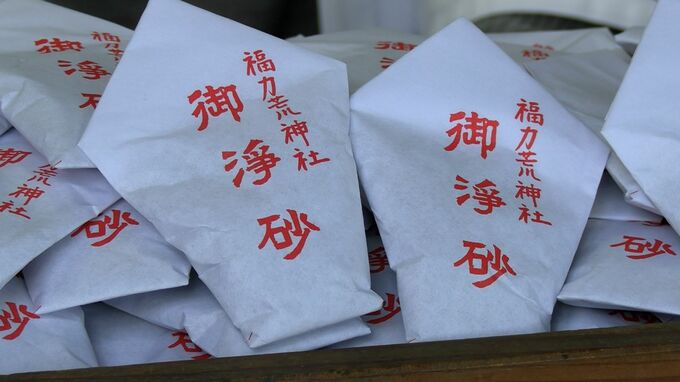 この時期に参拝すると家族全員がマムシの被害にあわなくなると言い伝えられていて、多くの参拝者が田畑や庭にまくとマムシが寄り付かないとされる砂・「御浄砂(ごじょうさ)」を買い求めていました。
