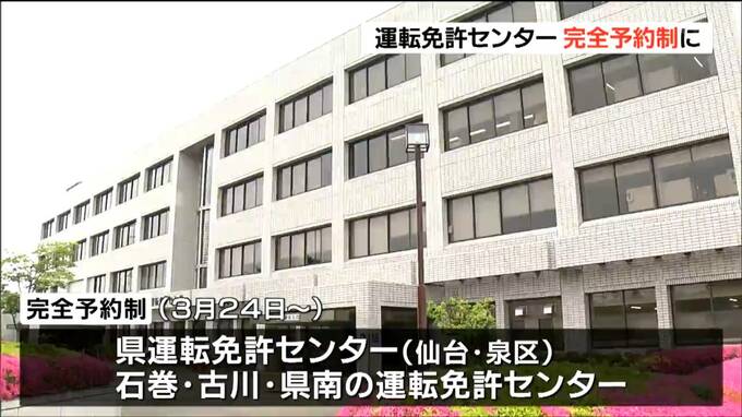 完全予約制になるのは、仙台市泉区にある県運転免許センターと石巻、古川、県南の運転免許センターです。