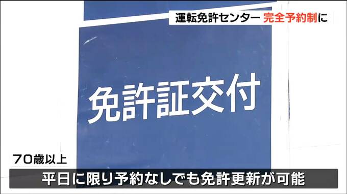 県警によりますと去年6月から一部の免許センターで日曜日のみ予約制にしたところ、待ち時間の短縮や混雑緩和につながったことから3月24日以降、平日も完全予約制に切り替えるということです。70歳以上の高齢者は平日に限り予約なしでも免許更新ができます。