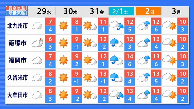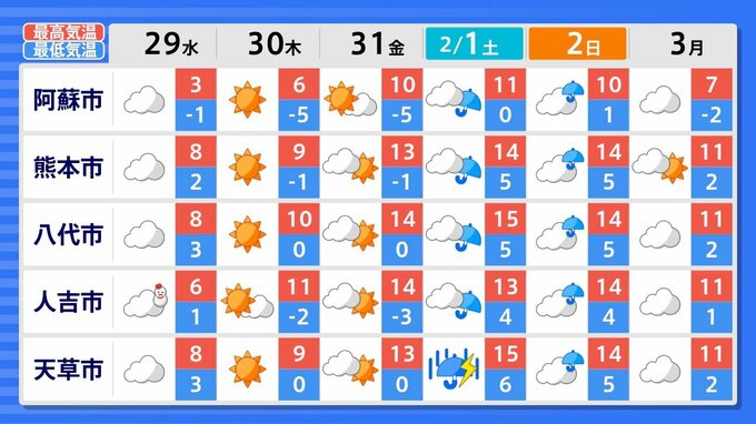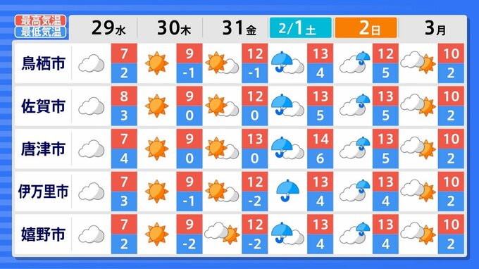 【大雪に関する気象情報】九州北部地方に発表 福岡15cm 熊本10cm【福岡・佐賀・長崎・大分・熊本・宮崎・鹿児島】雪のシミュレーション 南日本放送 2025年1月27日(月) 16:00 国内 天気 28日(火)広く雪の予報 お住まいの地域の天気予報です、画像で確認できます。 雨マークの所でも、雨に雪が混じることがありそうです。 宗像市・太宰府市・朝倉市・行橋市に☃マーク 飯塚市に☃マーク 多久市・伊万里市に☃マーク 日田市に☃マーク 山都町・水上村に☃マーク 人吉市に☃マーク えびの市に☃マーク
