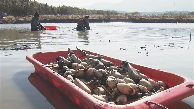 三重県伊勢市で、レンコンの収穫作業が最盛期を迎えています。
