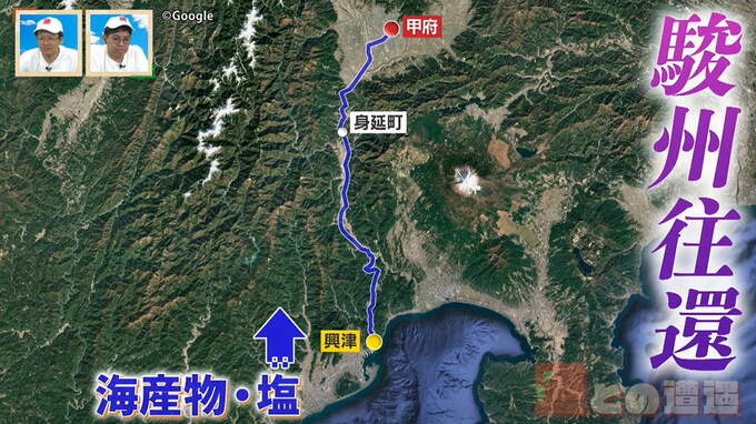 山梨県の甲府から身延町を経由して静岡県の興津(おきつ)までをつなぐ駿州往還は、駿河湾から甲府へ海産物や塩などを運ぶ重要な物流ルートでした。