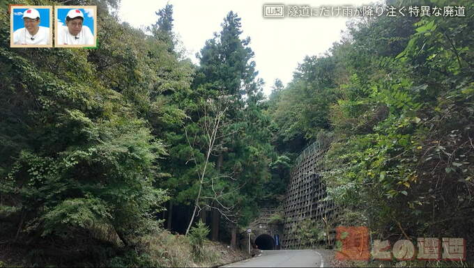 「車道化した際に越えられなかった最難関のところに、一本だけ隧道が造られた。水が通りやすい地層に隧道が掘られたため、山の湧き水や雨水が常に滴り落ちている」