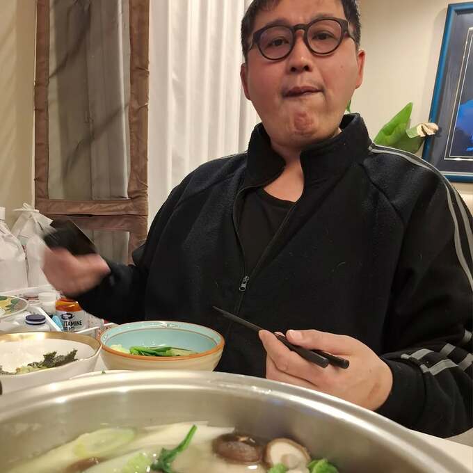投稿された写真では、しいたけ、ねぎ、白菜、魚介などの具材を煮込んだ鍋や、貴乃花光司さんが、料理を味わう姿が見て取れます。