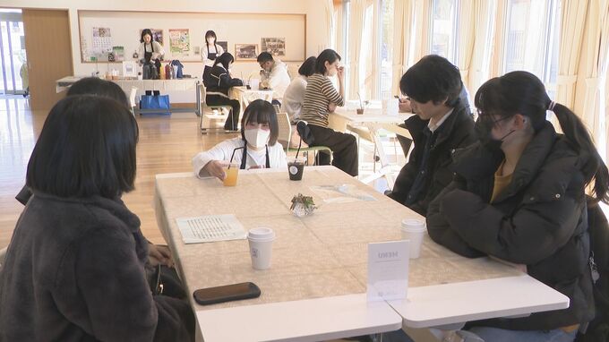 テーブルを並べたあと、客へのメッセージを手書きします。