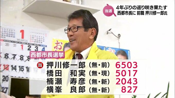 宮崎県西都市長選挙は、26日、投開票が行われ、前職の押川修一郎氏が4年ぶりの返り咲きを果たしました。再び西都市のトップに立つ押川氏。今後の市政運営についてどう考えているのでしょうか。4人が立候補した西都…