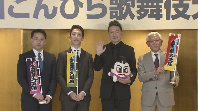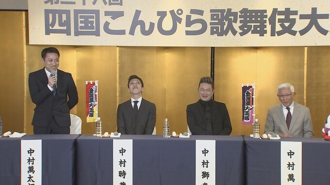 日本で現存する最古の芝居小屋、香川県・旧金毘羅大芝居(金丸座)で行われる「第三十八回『四国こんぴら歌舞伎大芝居』」製作発表記者会見が行われ、中村萬壽さん、中村獅童さん、中村時蔵さん、中村萬太郎さんが顔を揃えました。