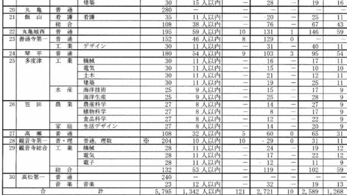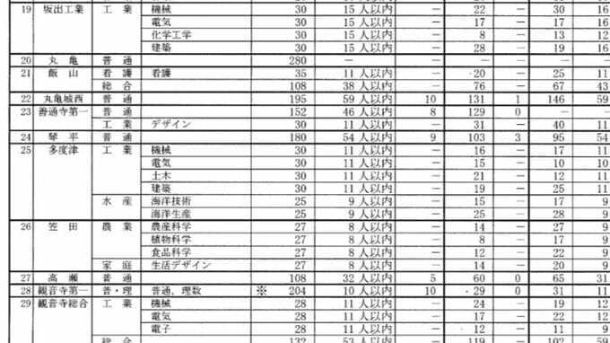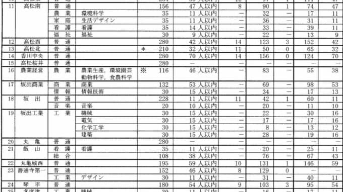 高松南・高松西・高松北・香川中央・農業経営・坂出商業・坂出・坂出工業