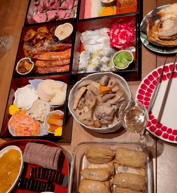 このお正月、工藤静香さんは、海老や、肉料理、煮物、いなり寿司、汁物、栗きんとん、更には「手毬寿司と五色サラダ、五色ゼリー」など、美味しそうな、おせち料理の画像をSNSにアップ。
