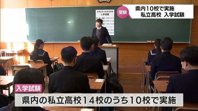 高校受験が本格的にスタートです。宮崎県内の多くの私立高校で、28日、入学試験が行われました。28日は、県内にある私立高校14校のうち、10校で入学試験が行われました。このうち、受験者数が最も多い宮崎日大高校…