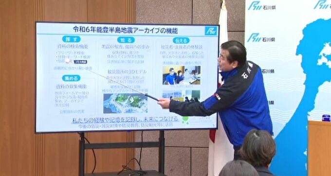 馳浩知事「時系列で記録を見て動画を見て感性とともに防災意識を高める。能登の関係人口を増やしていく上でもアーカイブが果たす役割は大きい」