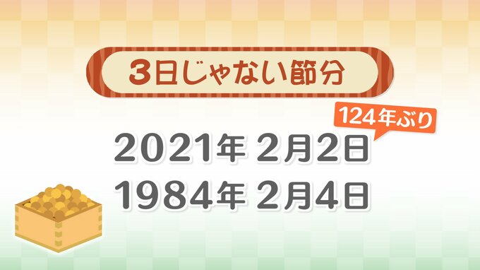 最近で言うと、2021年の節分も2月2日で、これは124年ぶりのことでした。