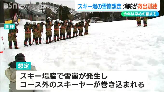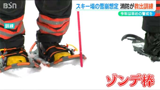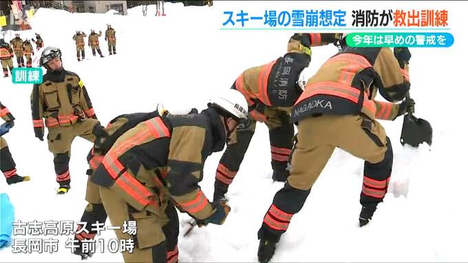 新潟県 長岡市の古志高原(こしこうげん)スキー場で28日、消防署の若手の隊員らが参加して雪崩からの救出訓練が行われました。