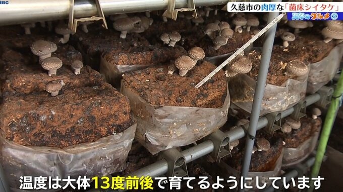 「湿度65パーセントぐらいのハウスを作ります。あとは温度ですね。温度は大体13度前後で育てるようにしています」