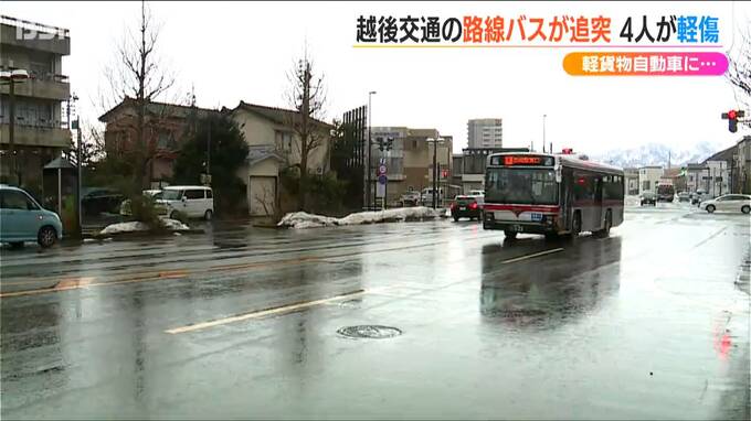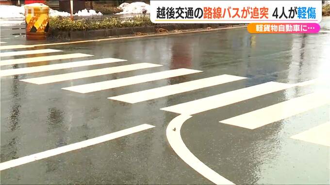 28日午前に新潟県長岡市今朝白の市道で、路線バスが軽貨物自動車に追突する事故があり、乗客ら4人が軽いけがをしました。