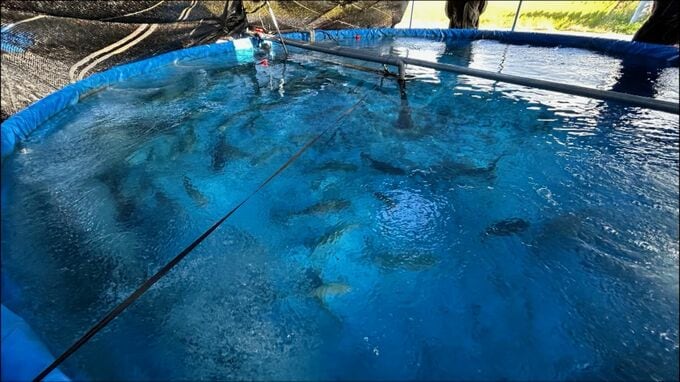 13基のいけすを購入し、今年4月に稚魚を放流、地元の水産業者の力を借り、来年1月ごろの初出荷を目指します。