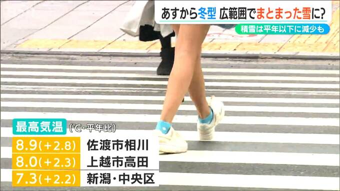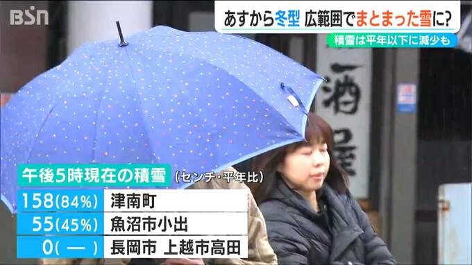 新潟県内では気温の高い状態が続き、長岡市や上越市でも0cmとなるなど、県内全ての観測地点で積雪量が平年以下となりました。