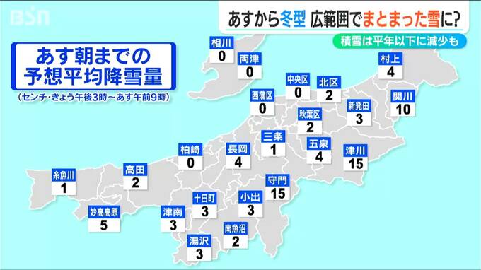 新潟県の雪情報システムによりますと、29日の午前9時までに下越の山沿いで最大20センチ、このほか海岸部をのぞいて平地でも数センチの降雪が予想されています。