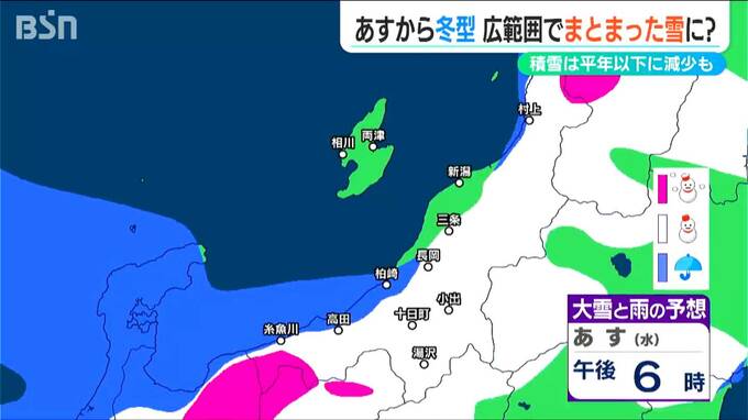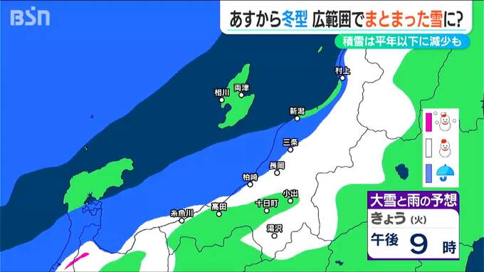 29日の日中は新潟市などで雪が止む時間もありそうですが、夕方以降は県内全域で再び雪となり、久しぶりにまとまった降雪になる恐れもあります。