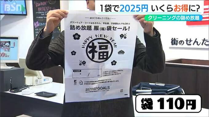 どれだけ詰め込んでも、合わせて2025円(税別)だという『服(福)袋セール』が、「ニューワタナベ」や「街のせんたく工房」など新潟県内およそ100店舗で開催されていました。