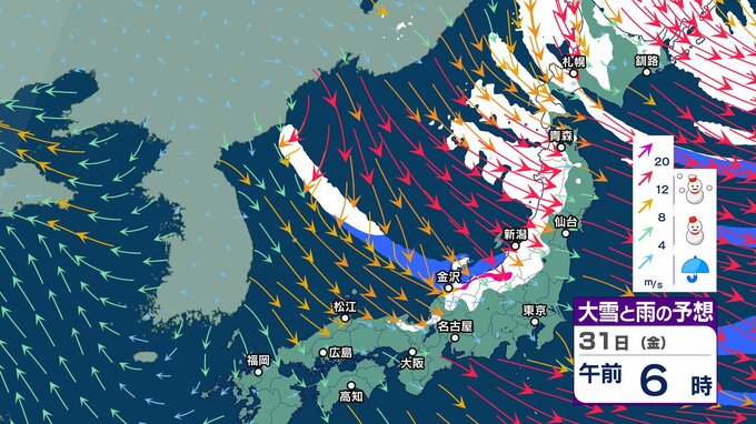 “冬の嵐”北日本や北陸は31日まで大雪や猛吹雪の見込み 積雪や路面凍結による交通の影響に注意【雪と雨と風のシミュレーション】 チューリップテレビ 2025年1月28日(火) 20:15 国内 天気 雪と雨と風のシミュレーション 31日(金)