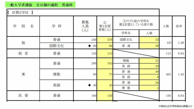 大阪府公立高校入試2025 茨木1.90倍、四條畷1.59倍、三国丘や北野の倍率は?公立希望56.5%で去年下回る【高校受験1月発表 全校掲載 令和7年度進路希望調査】 毎日放送 2025年1月28日(火) 19:15 国内 【旧第2学区】桜宮0.94倍 寝屋川0.83倍 学校別の倍率
