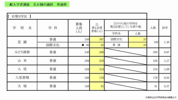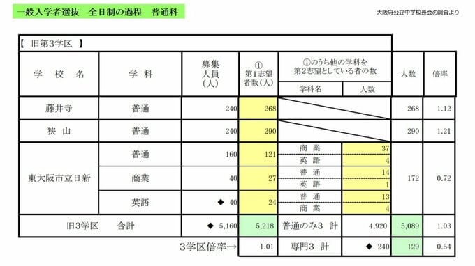 大阪府公立高校入試2025 茨木1.90倍、四條畷1.59倍、三国丘や北野の倍率は?公立希望56.5%で去年下回る【高校受験1月発表 全校掲載 令和7年度進路希望調査】 毎日放送 2025年1月28日(火) 19:15 国内 【旧第3学区】夕陽丘1.36倍 富田林0.95倍 学校別の倍率