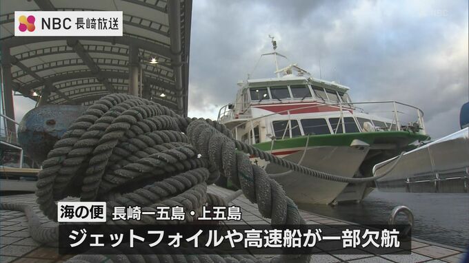 一方、海上ではしけが続いていて長崎と五島・上五島を結ぶジェットフォイルや高速船に欠航が出ています。