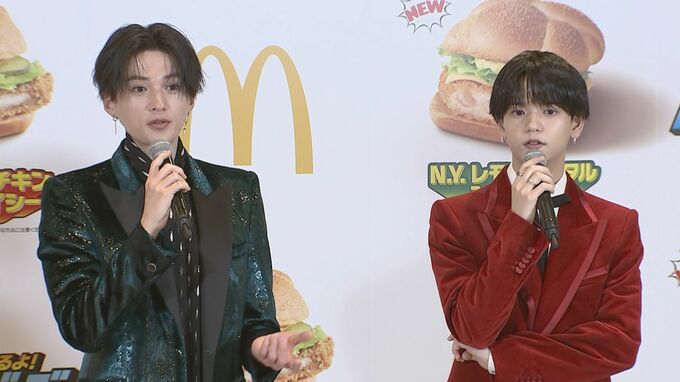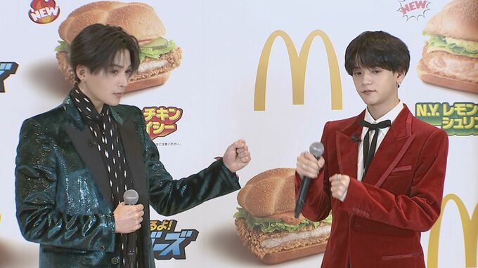 29日、マクドナルドの期間限定メニュー『行った気にさせるよ!N.Y.バーガーズ』の新商品発表イベントが行われ、FANTASTICSの八木勇征さんと中島颯太さん、そして、モデル・ゆうちゃみさんが登壇しました。