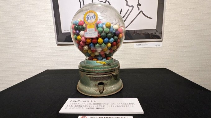 そのほかにも、福田さんがポスターのデザインの参考にした可能性がある、硬貨を入れるとガムボールが出てくるマシンや、たくさんの木って、シルクロードのサンゴ化石などが並びます。