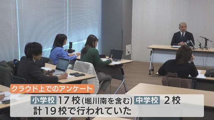 また、市教委は個人情報を含むアンケートをクラウド上で実施しないよう周知していましたが、堀川南小学校を含む小学校17校、中学校2校の計19校で行われていたことも明らかにしました。