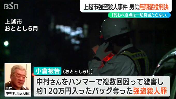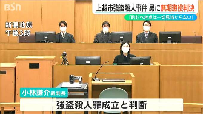 上越市でおととし、男性を殺害し現金を奪ったとして強盗殺人の罪などに問われている男の裁判で29日、新潟地裁は被告に無期懲役の判決を言い渡しました。
