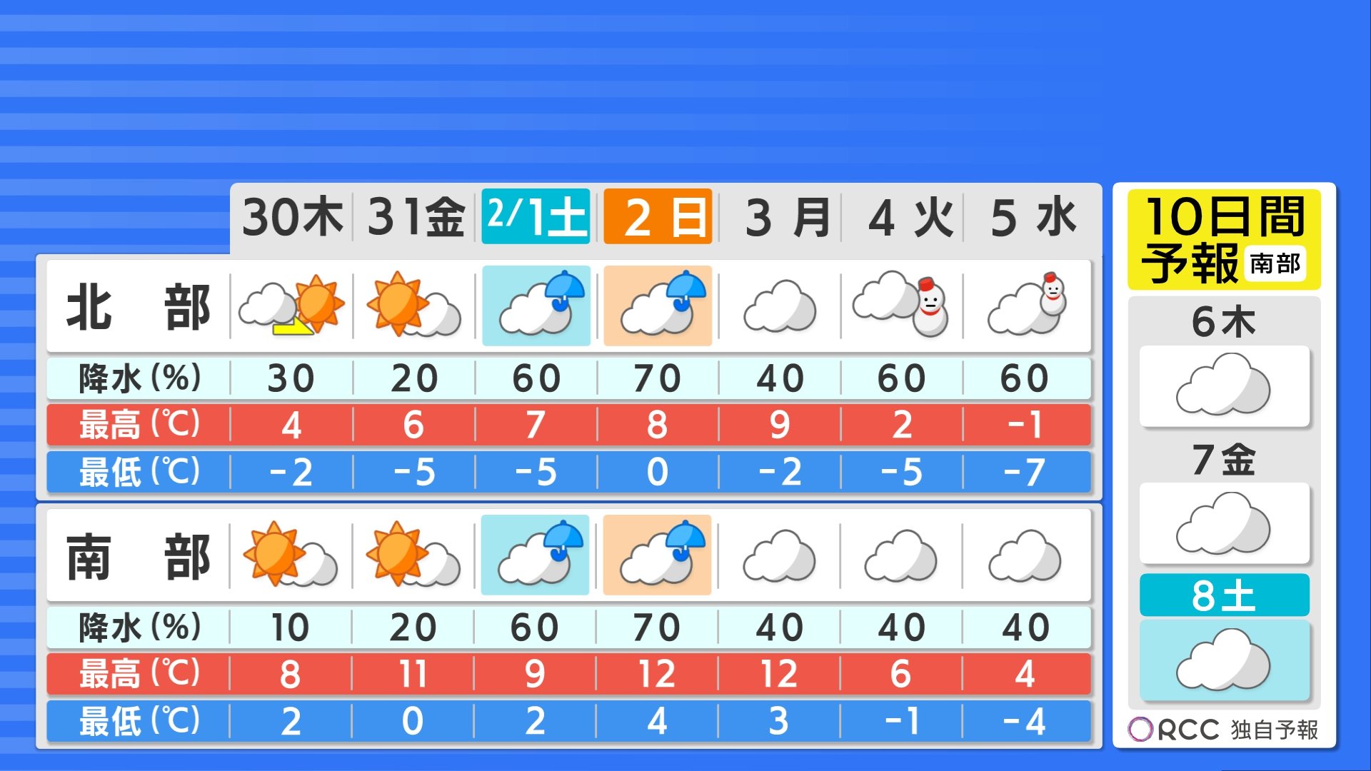 あさってにかけて冬型が緩み各地で日差しが届きます。週末は低気圧が通過するため雨が降るでしょう。低気圧の通過後は寒波がやってきそうです。気温が今週よりも大きく下がり、北部では真冬日になる予想です。今後の雪の情報や低温の情報にご注意ください。