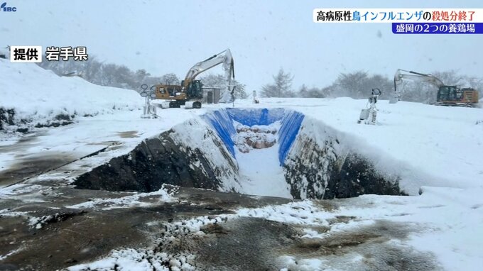 高病原性鳥インフルエンザが確認された盛岡市の2つの養鶏場では、29日午前9時までにニワトリおよそ66万2000羽全ての殺処分が終了しました。養鶏場での高病原性鳥インフルエンザの発生が相次いでいる岩手県内では、2…