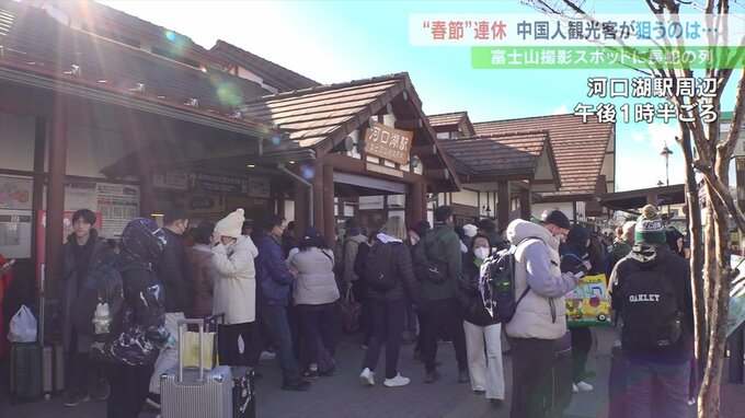 中国の旧暦の正月=春節の大型連休で山梨県内の観光地に大勢の中国人観光客が詰めかけています。