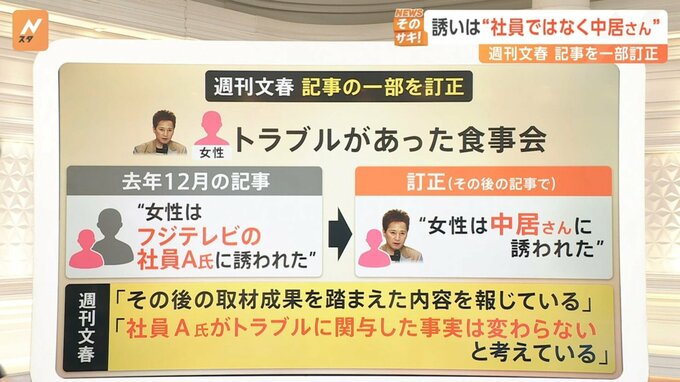 中居さんと女性をめぐるトラブルで28日、週刊文春が記事を訂正。事態が複雑化するなか、フジテレビ側の対応を見ていきます。