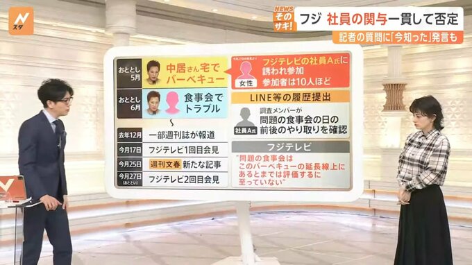 フジ 社員の関与 一貫して否定 記者の質問に「今知った」発言も
