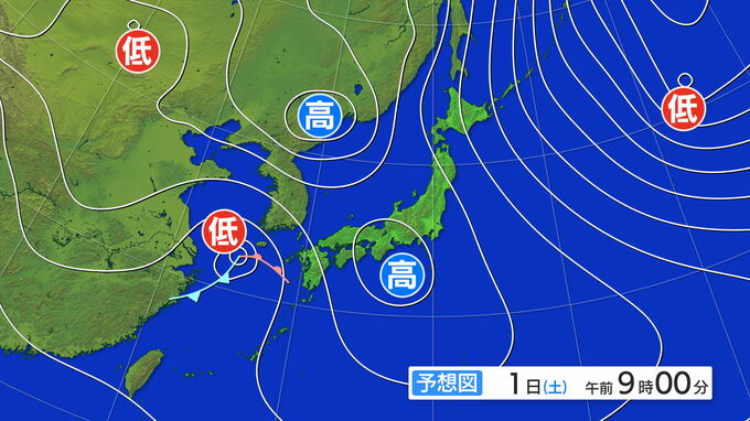 土日は「南岸低気圧」の通過で西日本から東日本で雨に 東京では節分の2月2日(日)に“冷たい雨”や“雪・みぞれ”が降る天気に 最新の雨・雪と風シミュレーション 北陸放送 2025年1月30日(木) 14:30 国内 週末、土曜日と日曜日は低気圧が西日本から東日本にかけて進み、太平洋側の地域では雨や雪が降る見込みです。東京をはじめ関東では2日(日)は冷たい雨やところによっては雪が降りそうです。 2月1日(土)午前9時の予想天気図です。東シナ海にある前線をともなった低気圧がその後東へと進む見込みです。 2月1日(土)午前9時の予想天気図 「南岸低気圧」と呼ばれる低気圧の通過にともない、1日は西日本を中心に雪の降る天気になりそうです。 その後、2日(日)には低気圧は日本の南海上を通り、関東に接近する見込みです。 2月2日(日)午前9時の予想天気図 関東では2日は湿った空気の影響で天気は下り坂に向かうでしょう。