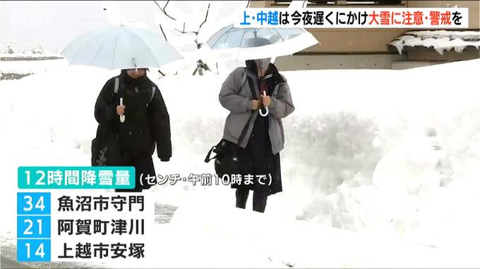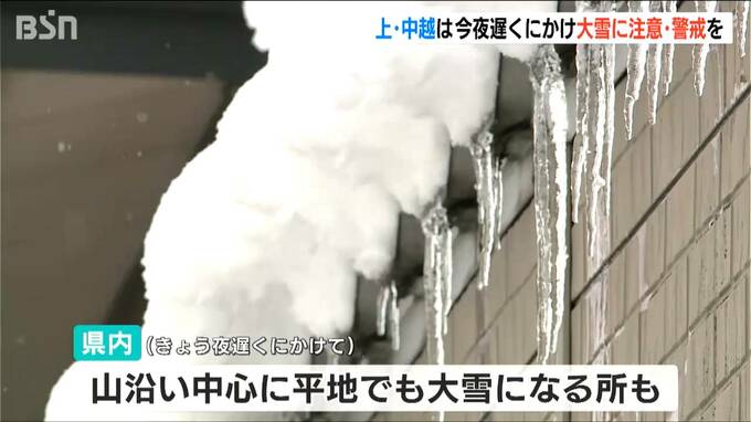 また、予想より寒気が強まったり、同じ地域で雪が降り続いたりした場合には、上・中・下越で警報級の大雪となる恐れがあります。